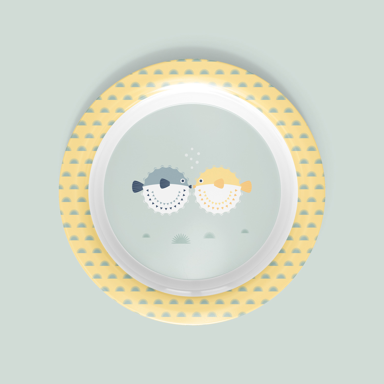 Whimsical blowfish motifs sending bubbly underwater kisses