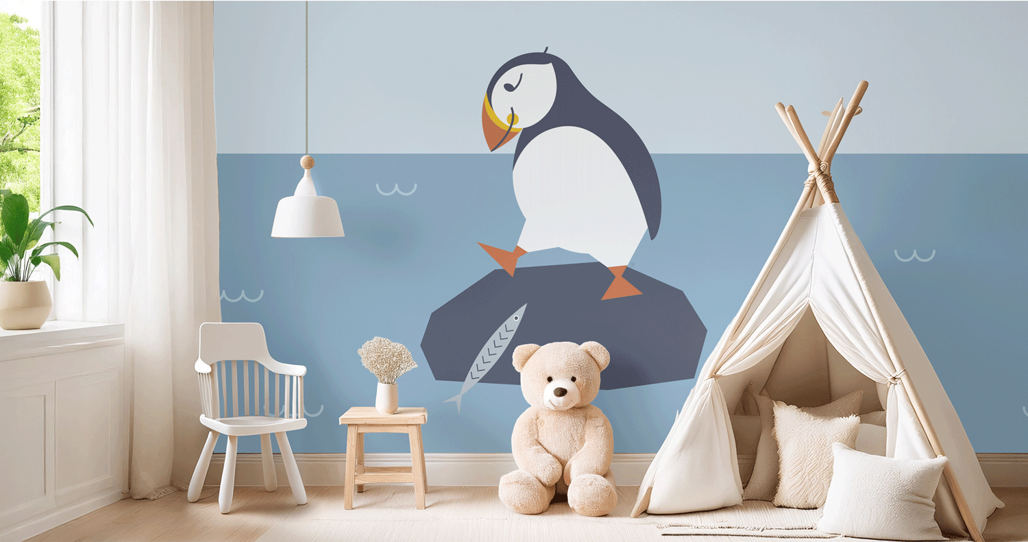 Cheerful puffin motifs full of sea air, friendship and lightness