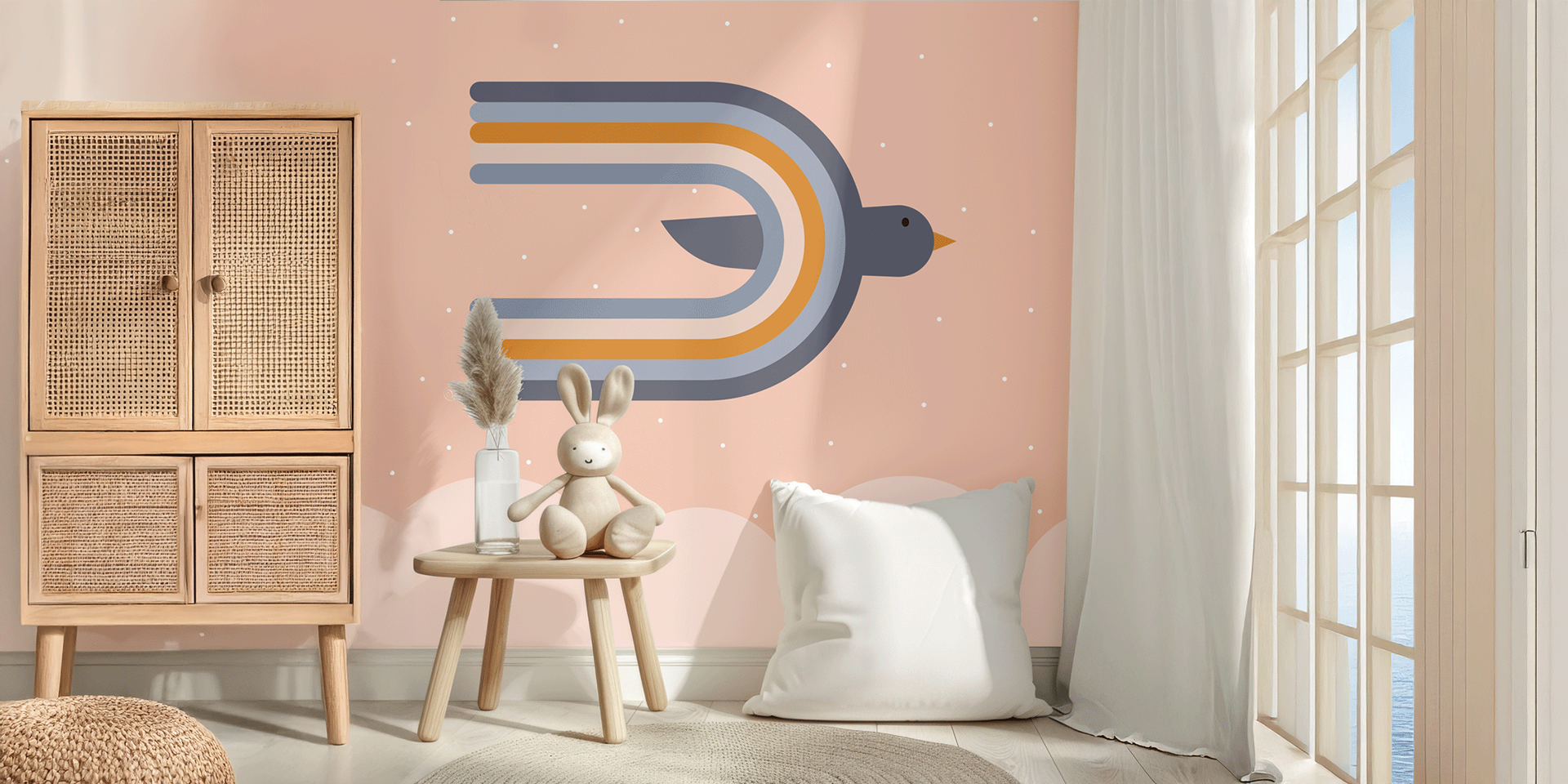 A dove with rainbow feathers carries hope and harmony across the sky.