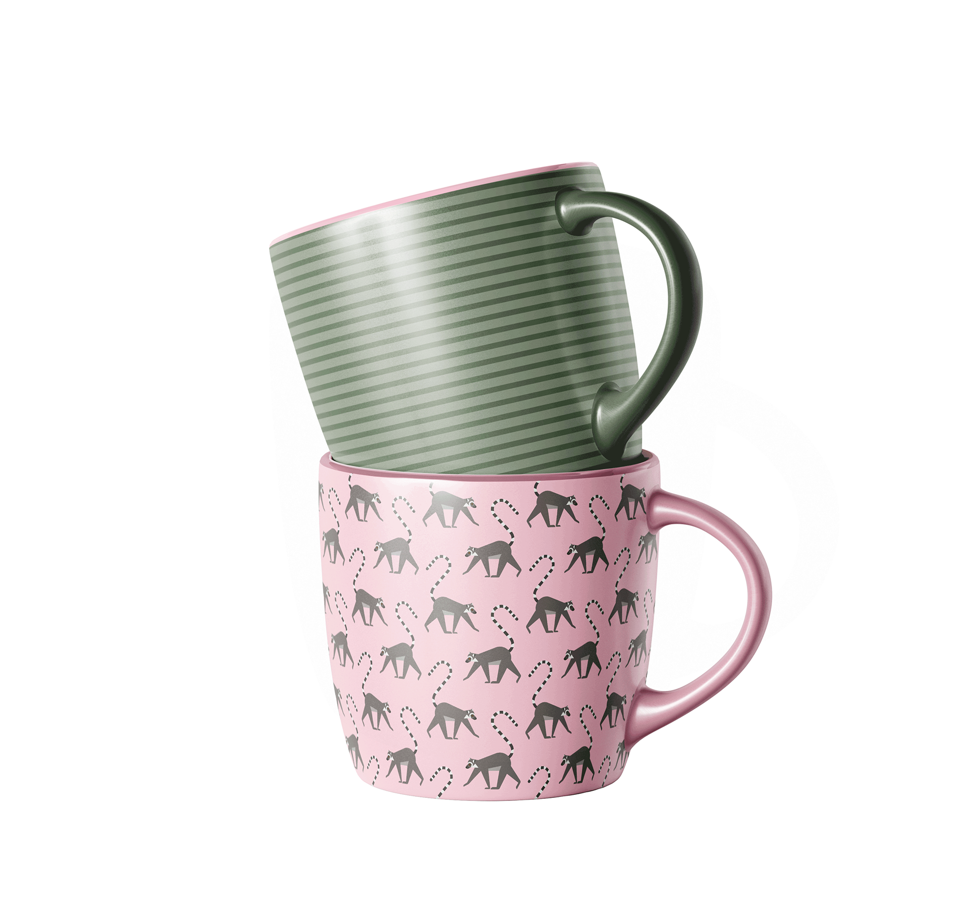 A modern collection featuring lemurs and leaves, stripes and check patterns. Playful lightness combined with timeless tranquillity. Perfect for children‘s products and natural lifestyle collections.